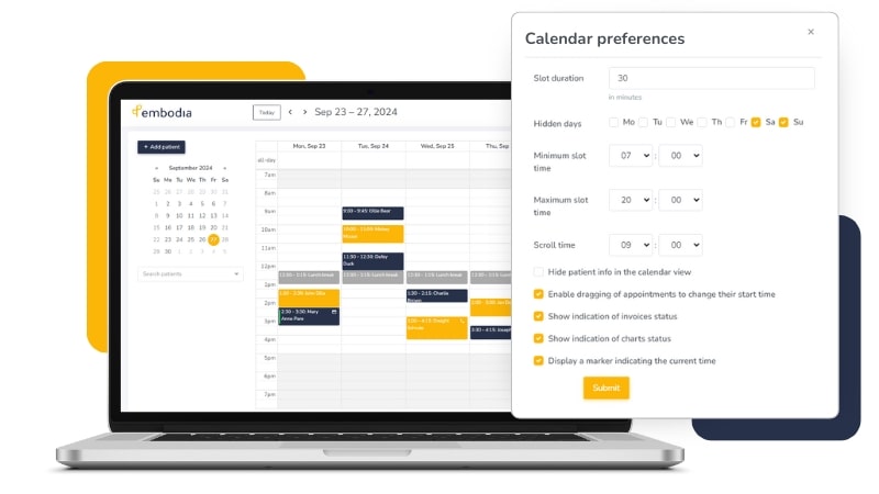 Protect patient information with Embodia’s secure platform. Our healthcare scheduling and booking system complies with all relevant regulations, including HIPAA, PIPEDA, and PHIPA, ensuring that your practice maintains high standards of data security and confidentiality.
